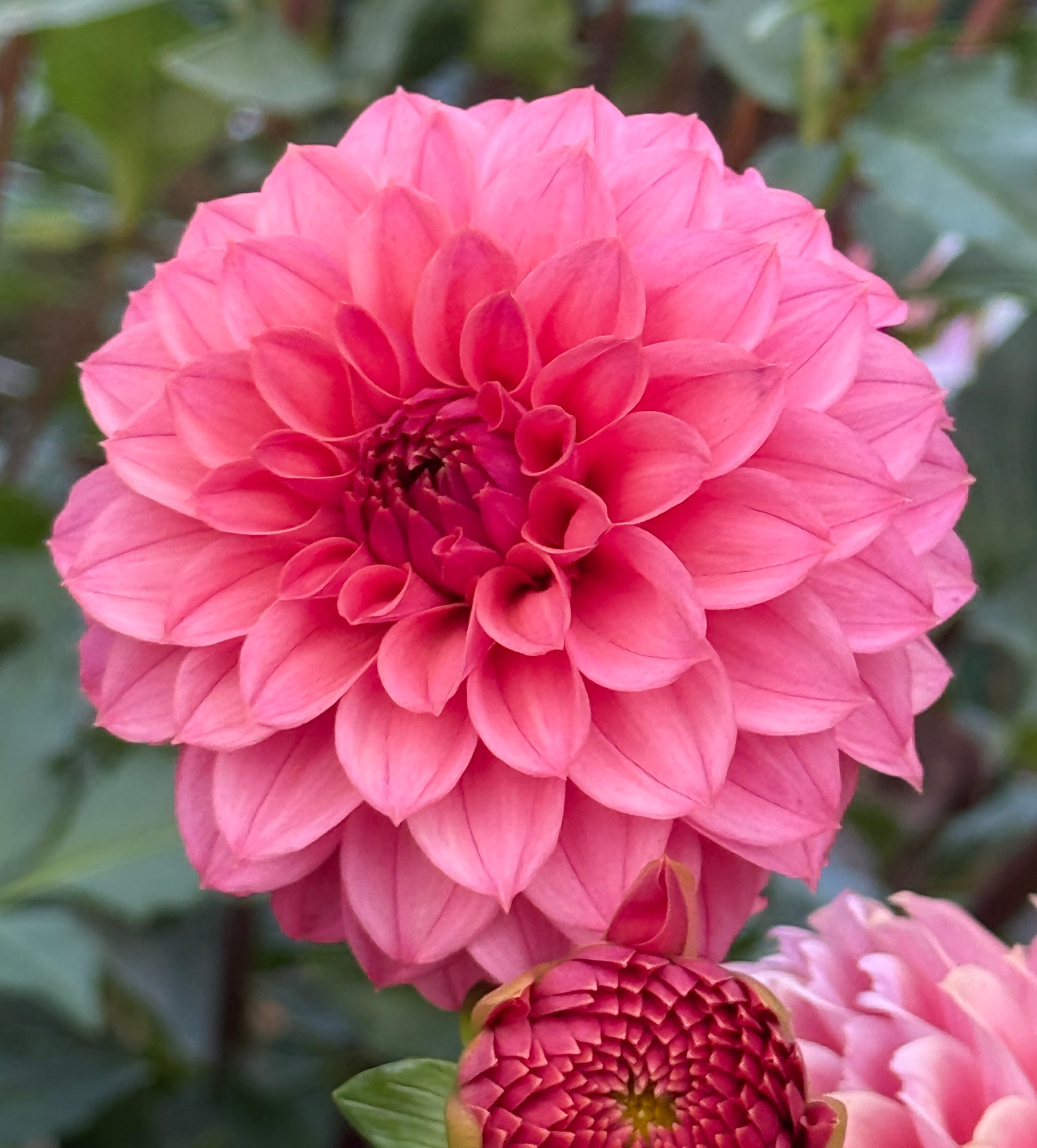 A beautiful coral pink dahlia that loves to bloom!
